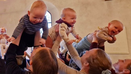 Selve babysalmesangen varer 45 minutter hver gang, og bag­efter er der tid til hygge med kaffe, te, frugt og gode snakke med de andre forældre.