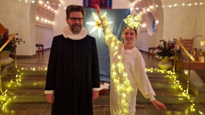 Træd ind i et varmt og stemningsfuldt univers, hvor julens fortælling bliver levende, så også de mindste kan være med. Sammen synger vi selvfølgelig også nogle af de mest elskede julesalmer, inden vi ønsker hinanden glædelig jul.